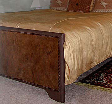 Fantasy finish: multiple distressed finishes to imitate reptile-upholstered panel bed.